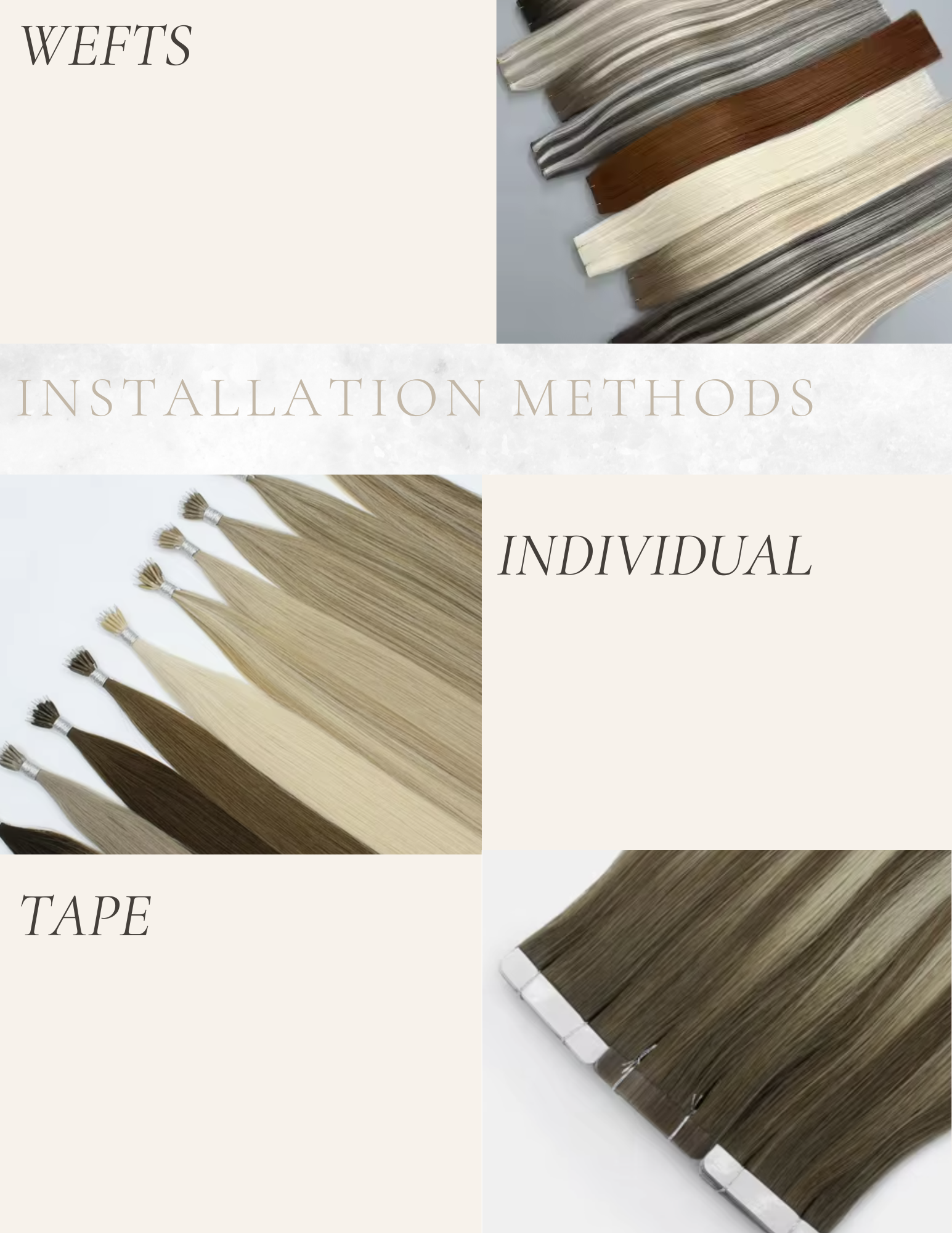 Tape-in methods are great for clients who are familiar with adhesive methods and love the ease of application and versatility of placement.